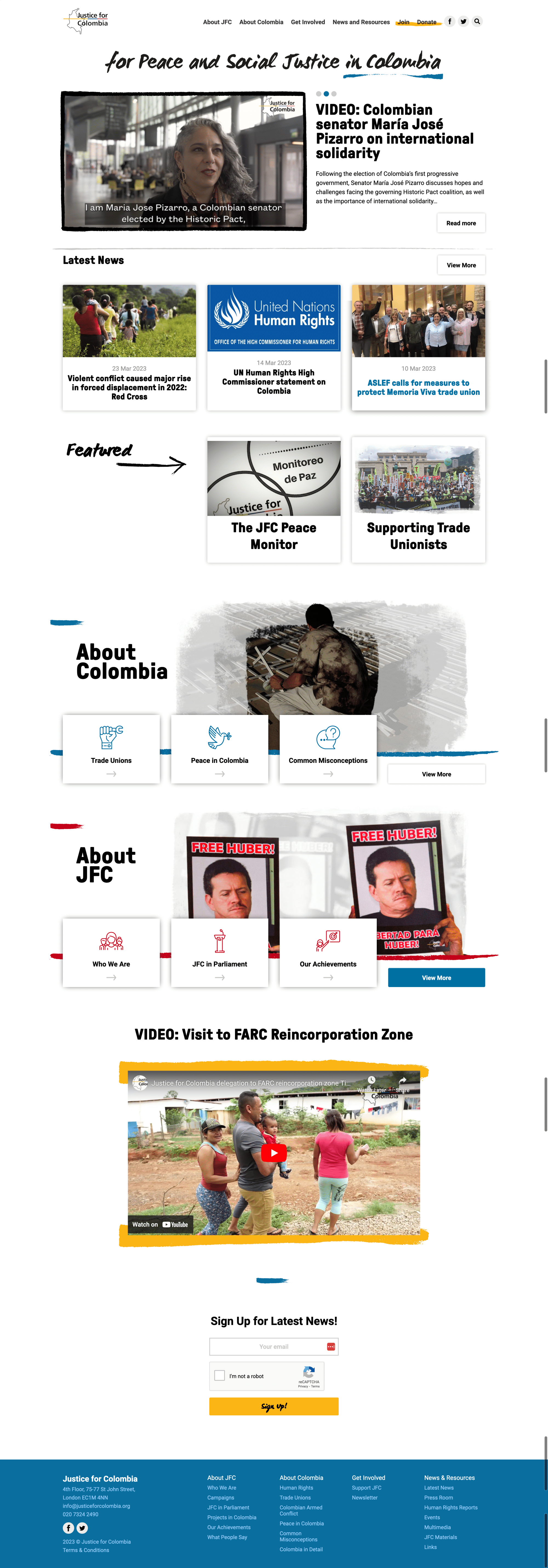 Justice For Colombia (JFC) is a non-profit organization created in 2002 by the British Trade Union Movement to support Colombian Nationals struggling with Human and Labour rights, Peace and Social justice in Colombia.
